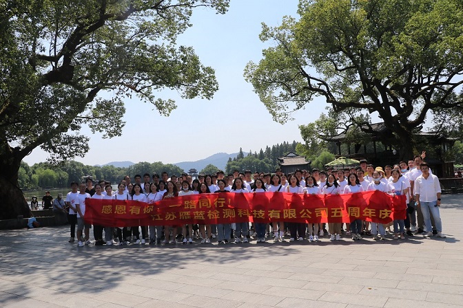 值此雁藍(lán)檢測成立五周年之際,公司工會組織全體員工兩日(9.5-6)杭州行團(tuán)建活動,在做好個(gè)人防護(hù)的前提下,雁藍(lán)人著統(tǒng)一司慶文化衫,在杭州宋城、西湖、西溪濕地公園留下美麗的身影。