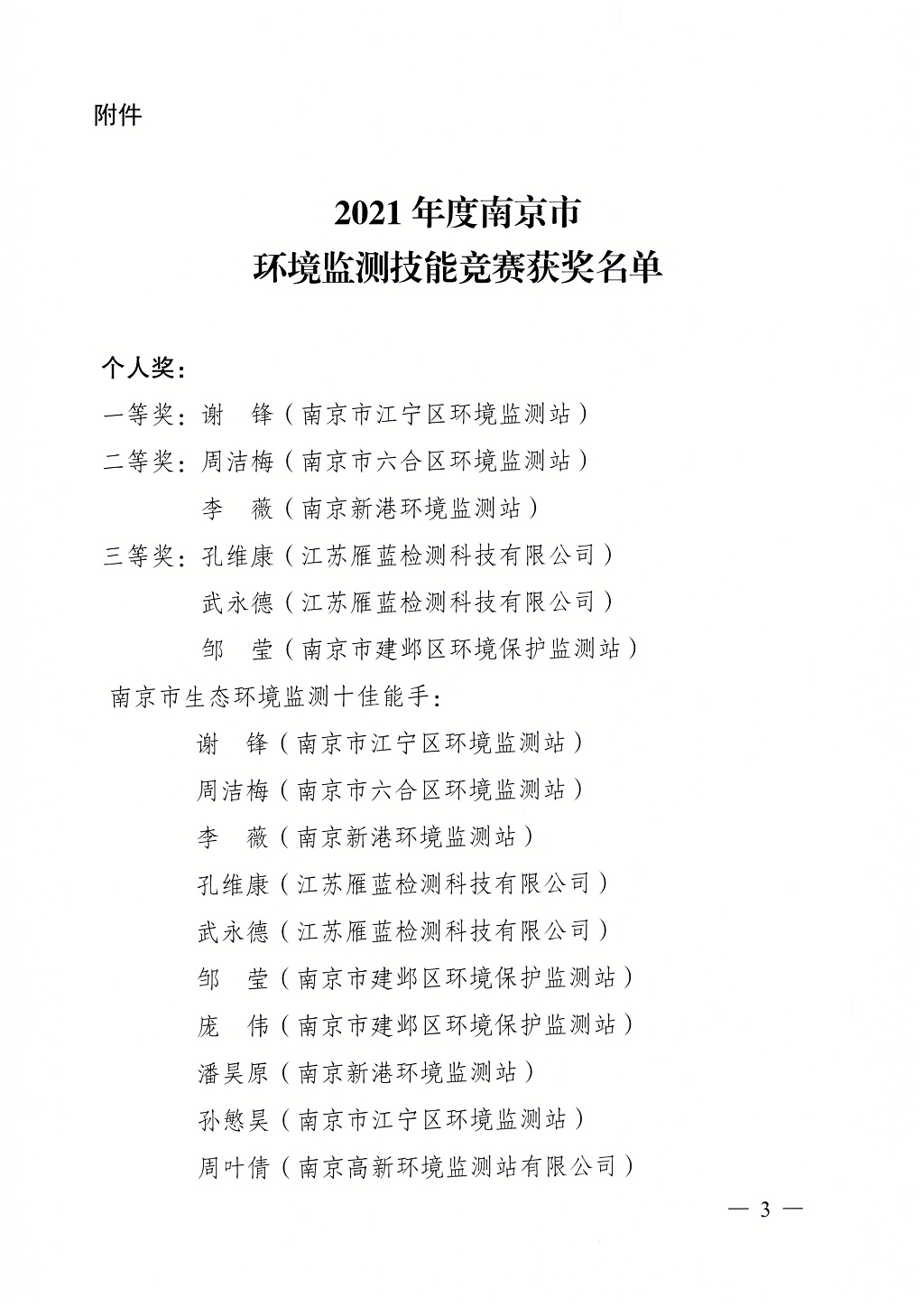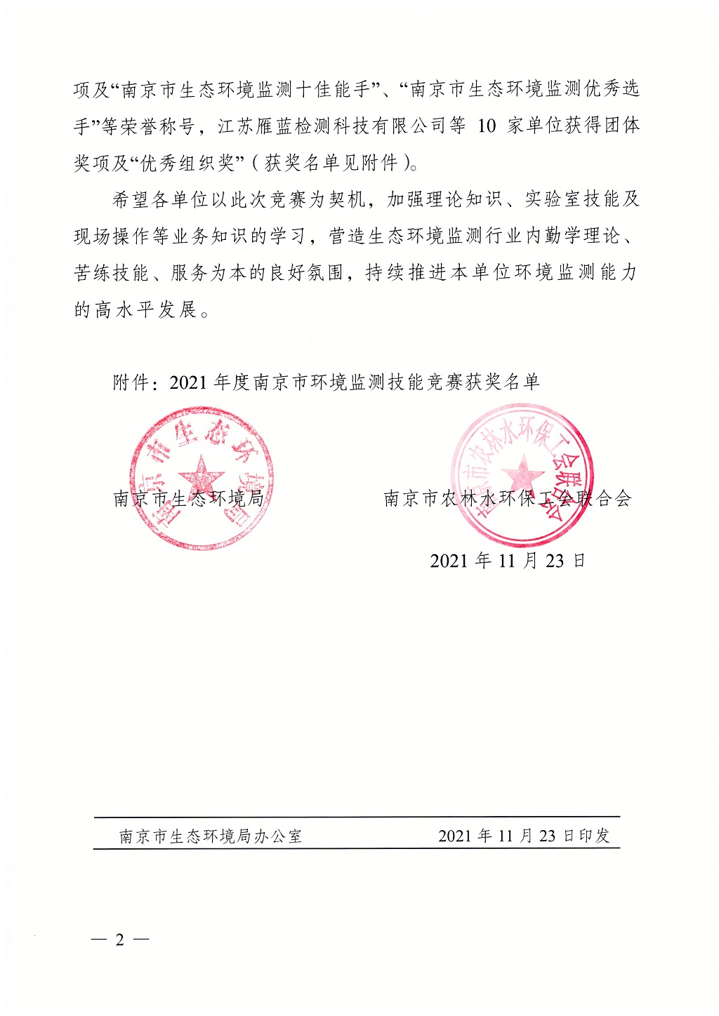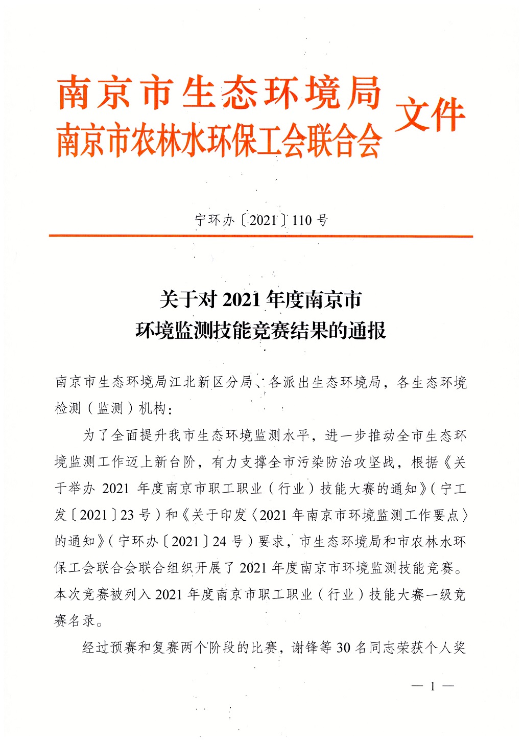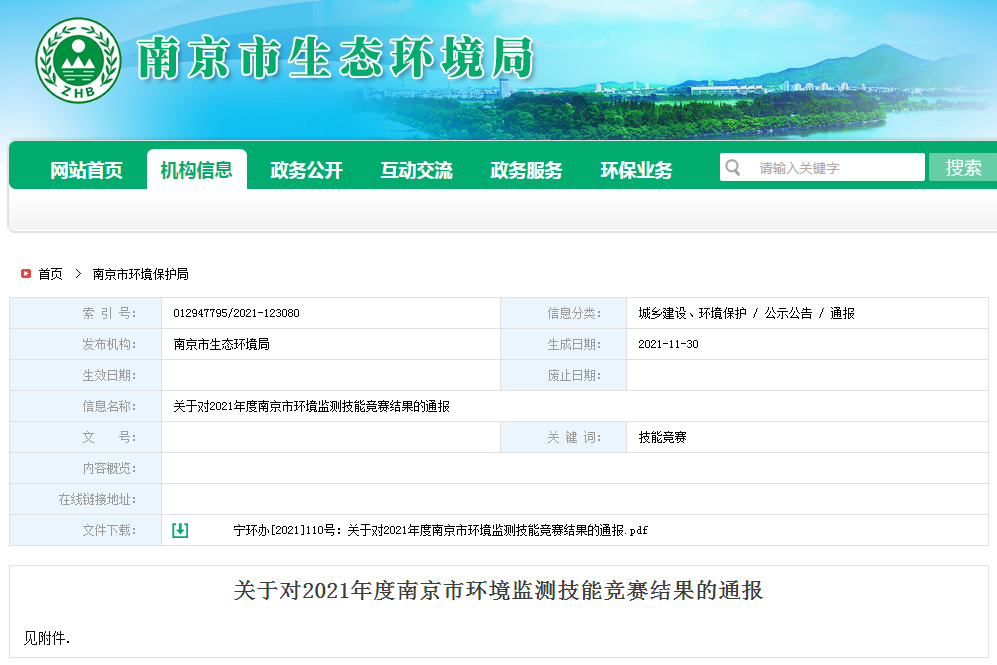 10月16日-27日,由南京市總工會、市人力資源和社會保障局、共青團南京市委主辦,南京市生態(tài)環(huán)境局和南京市農(nóng)林水環(huán)保工會聯(lián)合會承辦,江蘇省南京環(huán)境監(jiān)測中心協(xié)辦,南京環(huán)境保護產(chǎn)業(yè)協(xié)會支持的2021年南京市環(huán)境監(jiān)測技能競賽決賽在江寧橫溪街道正式開賽,來自市生態(tài)環(huán)境系統(tǒng)和社會化環(huán)境監(jiān)測機構(gòu)的16支環(huán)境監(jiān)測隊伍在此聚集進行環(huán)境監(jiān)測大比武。本次競賽由南京市生態(tài)環(huán)境局局長錢鋒擔任競賽組委會主任,同時專設專家及監(jiān)督委員會,確保競賽結(jié)果公正公允。我司也派出選手參賽,取得團體一等獎和多個個人獎項的佳績!