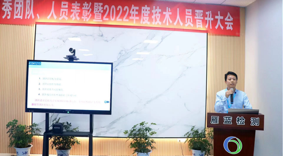 2022年5月13日,雁藍(lán)檢測(cè)在江寧本部召開2021年度表彰暨2022年度職務(wù)晉升大會(huì)。公司總經(jīng)理張布偉、副總經(jīng)理蔡同鋒,江寧本部和江北分場(chǎng)所相關(guān)人員參加會(huì)議,會(huì)議由副總經(jīng)理周君主持。