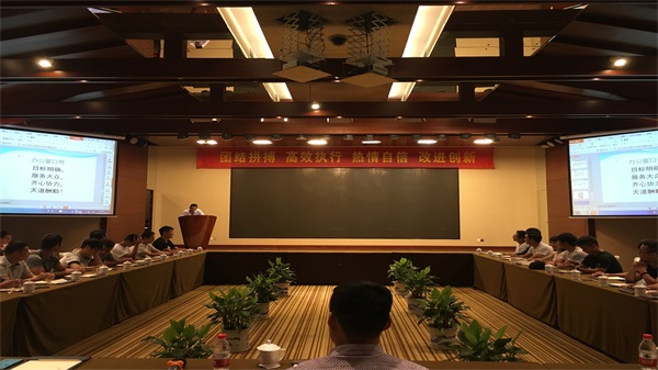 會(huì)議在副總經(jīng)理周軍的主持下召開,分為各部門主管總結(jié)發(fā)言、副總經(jīng)理章勇及總經(jīng)理張布偉重要指示三個(gè)部分。