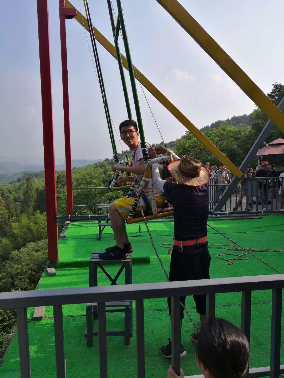 體驗(yàn)驚險(xiǎn)刺激的龍泉洞高空秋千,無所懼,才是真青春!