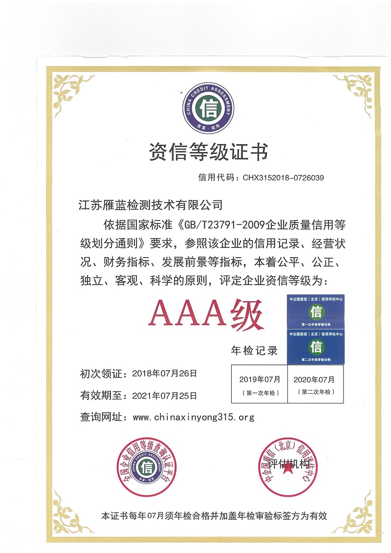 ? 江蘇雁藍(lán)檢測科技有限公司 2021 All Rights Reserved.